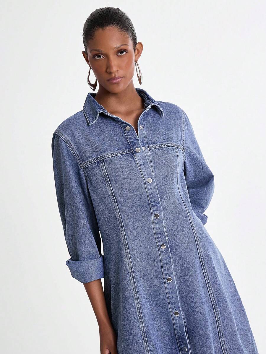 Daynim 女士休闲长袖牛仔通勤连衣裙