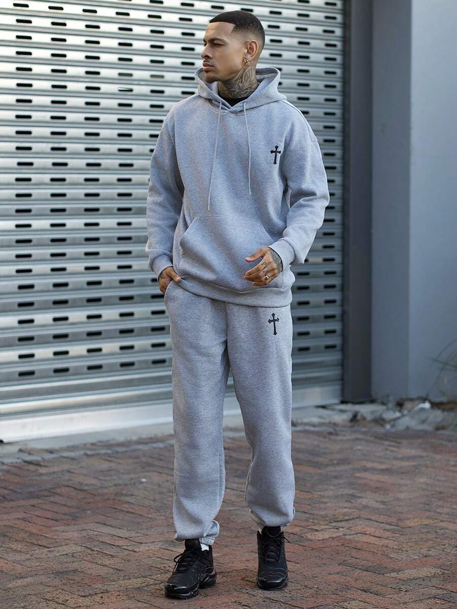 Devon Thys 男士秋冬连帽衫套装 | 十字印花 | 休闲运动必备
