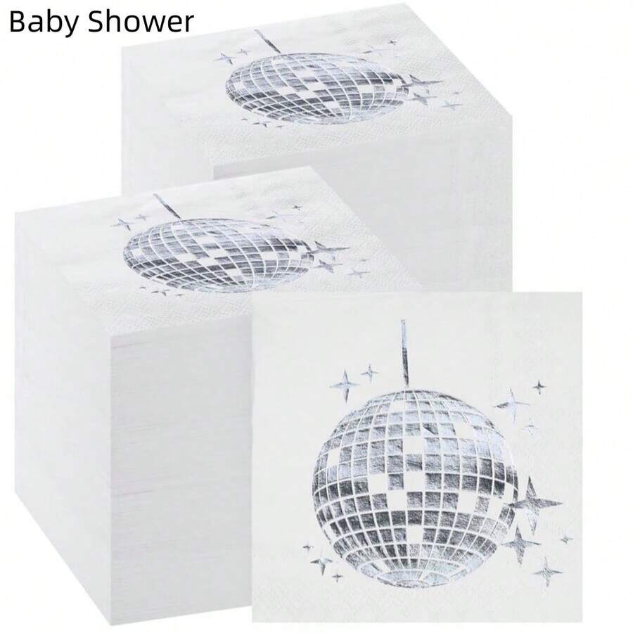 迪斯科派对鸡尾酒餐巾时尚一次性 70 年代 80 年代 90 年代派对用品鸡尾酒餐巾派对餐巾纸餐巾适用于订婚生日毕业典礼婴儿淋浴用品(银色,25 包)