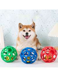 1个随机颜色空心圣诞橡胶发声球玩具,带铃铛,适合猫狗玩耍
