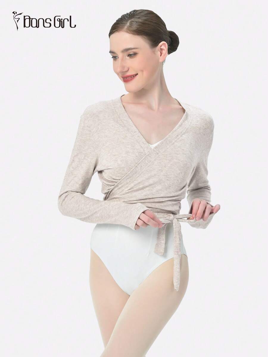 DonsGirl 1件女士法式长袖芭蕾舞上衣 - 交叉系带深V领修身纯色 | 适合健身、瑜伽、拉丁舞和日常穿着