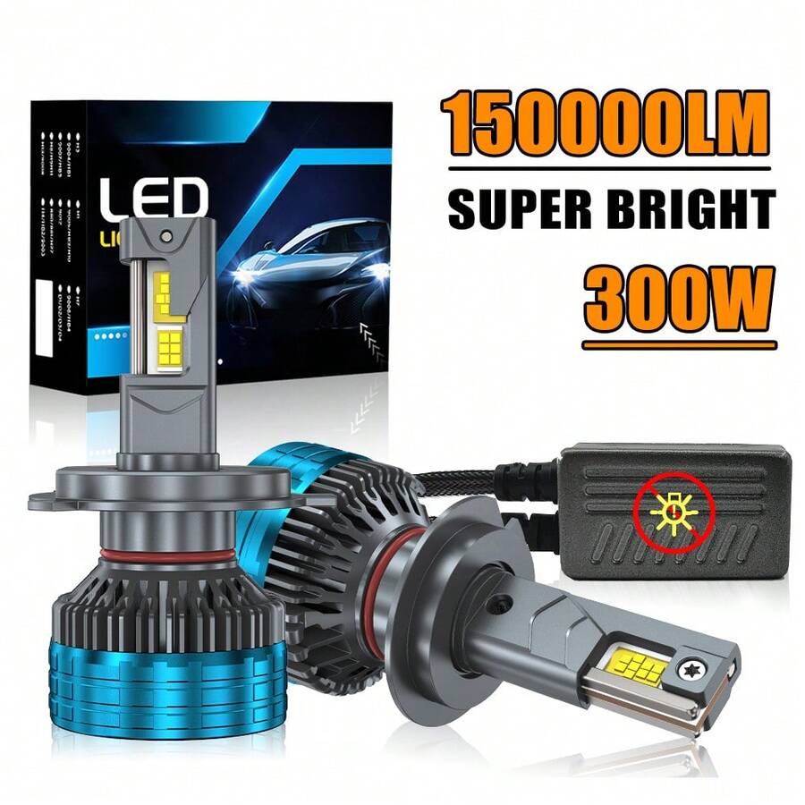 DrViAion 2个H4 LED Canbus汽车大灯超级H11 H7 H1 9012 9006 HB4 9005 LED灯泡即插即用300W 6000K汽车灯