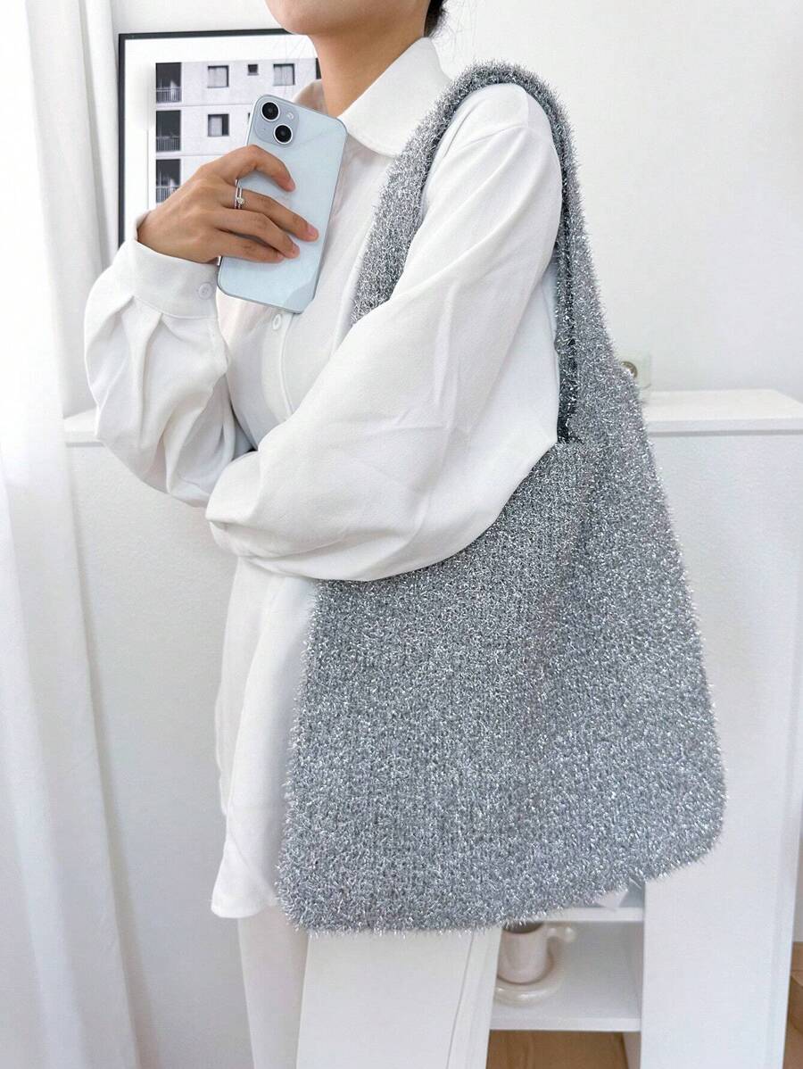 ENBEI 轻便、便携、时尚、简约的钩针编织包,饰有闪亮细节,闪亮针织晚宴包,女士闪亮手提包,奢华女士手提包,女士手拿包,适合派对、婚礼、伴娘、晚宴等场合,优雅女士之选,适合少女、女大学生、工作、商务、通勤,母亲节礼物,送给妈妈的礼物。