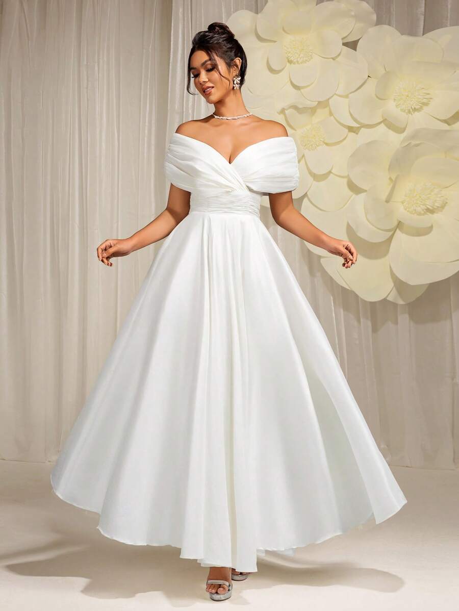 EVERLYL Everly L 优雅夏季纯白色露肩摆夏季婚纱,适合婚礼、舞会、生日、派对
