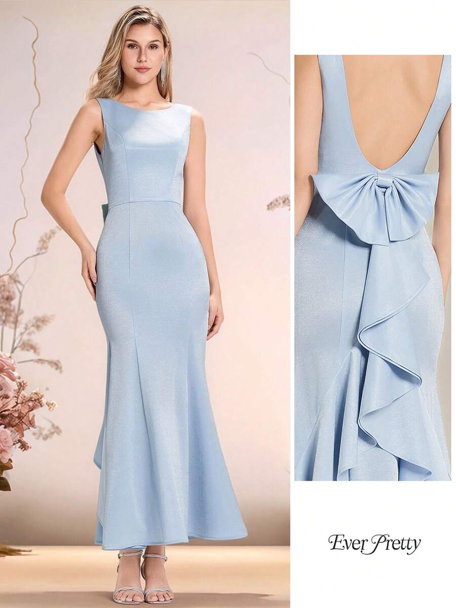 EVERPRETTY 优雅伴娘礼服,带蝴蝶结,露背蓝色礼服