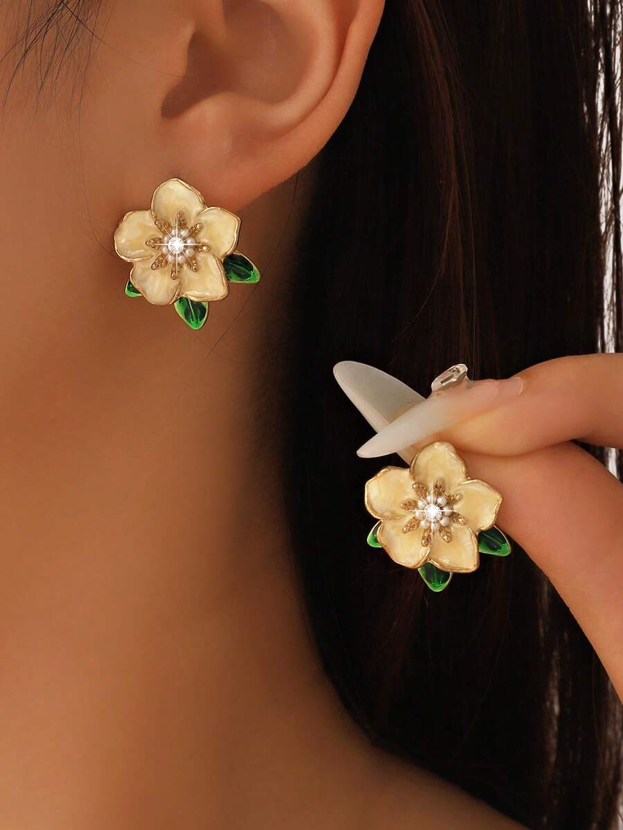 时尚锌合金花朵耳钉,适合女士日常装饰