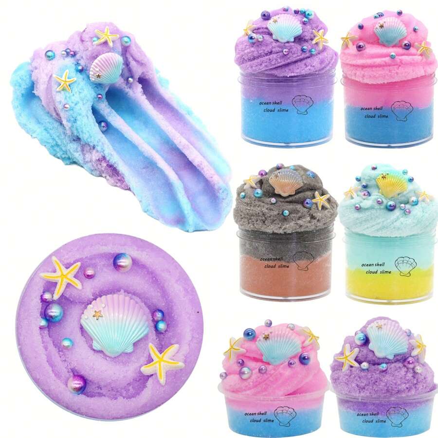 200ML 彩色蓬松云朵粘液,适合儿童海洋贝壳香味粘液,儿童 DIY 成人减压玩具,适合儿童节礼物,超柔软不粘,专注于缓解压力 DIY 惊喜粘液、生日礼物和复活节派对礼物(粘性更强)