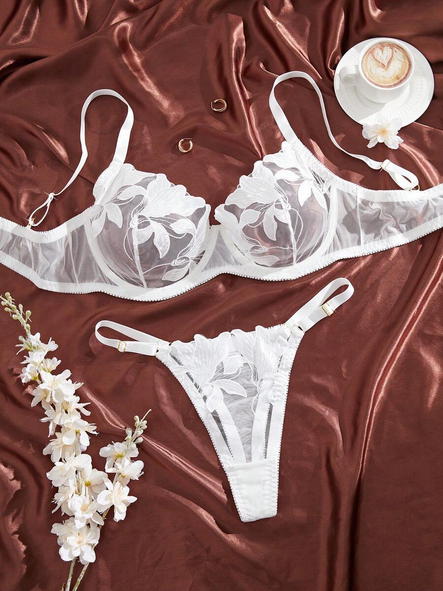 大码女式蕾丝刺绣性感内衣套装,钢圈全罩杯文胸和内裤,狂野不羁