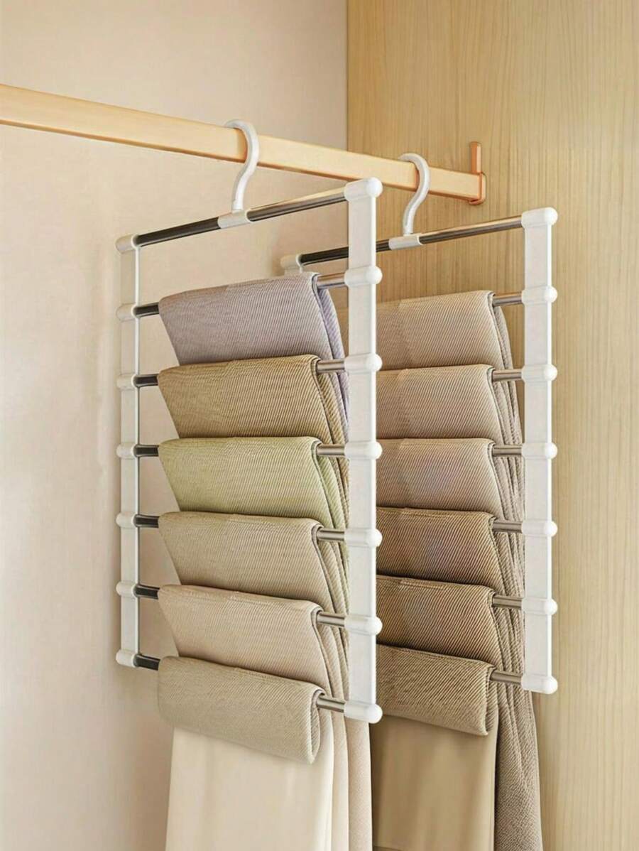 1件,便携式收纳衣架多功能裤架梯形挂裤折叠裤架不锈钢裤挂裤夹多层无痕收纳挂裤架,(本产品需自行组装,安装简便,操作方便)适合连衣裙、裤子、鞋子、牛仔裤、靴子、裙子、春季、极简主义、夏季上衣