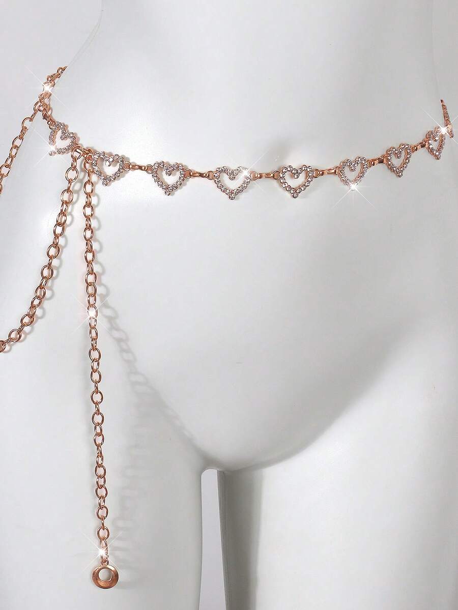 1 件时尚简约心形水钻合金腰链,女士连衣裙装饰