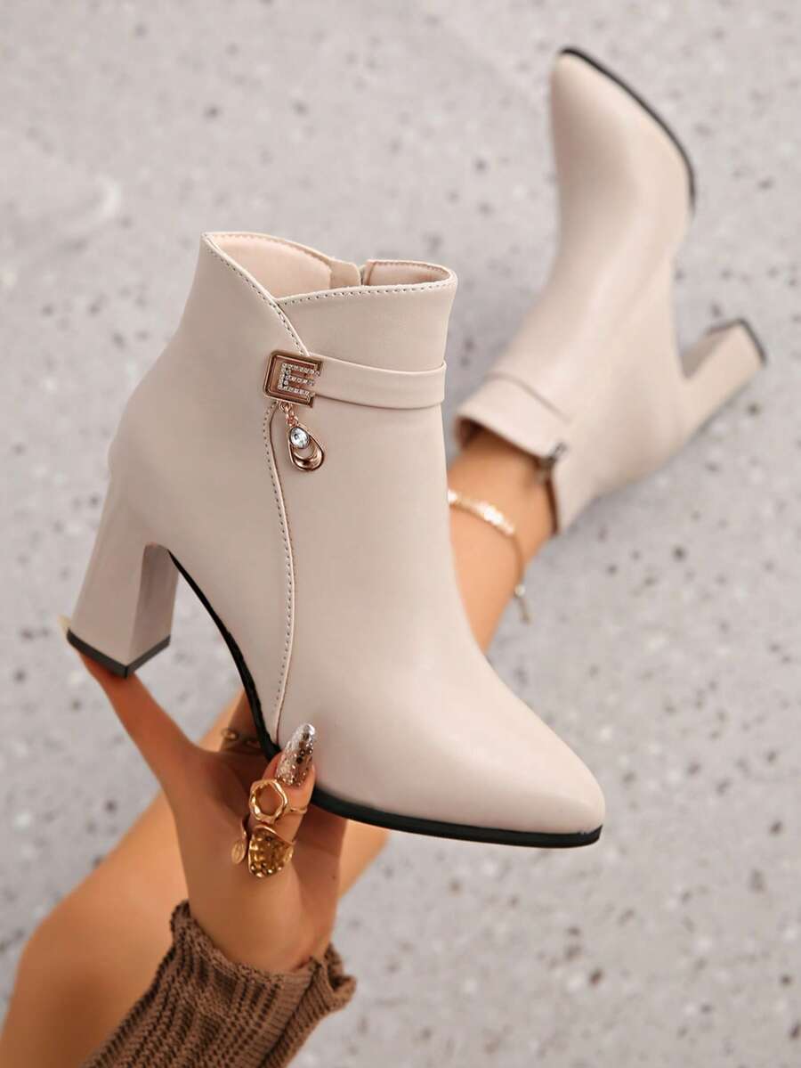 秋冬新款尖头女式粗高跟时尚靴子,英伦风踝靴