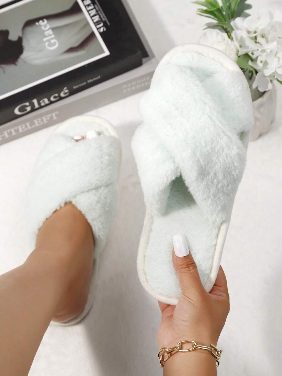 • 秋冬女士时尚蓬松毛绒一脚蹬拖鞋,柔软轻便室内家居拖鞋,安静地毯拖鞋,毛茸茸的鞋子 - 青碧色 - 查看 2