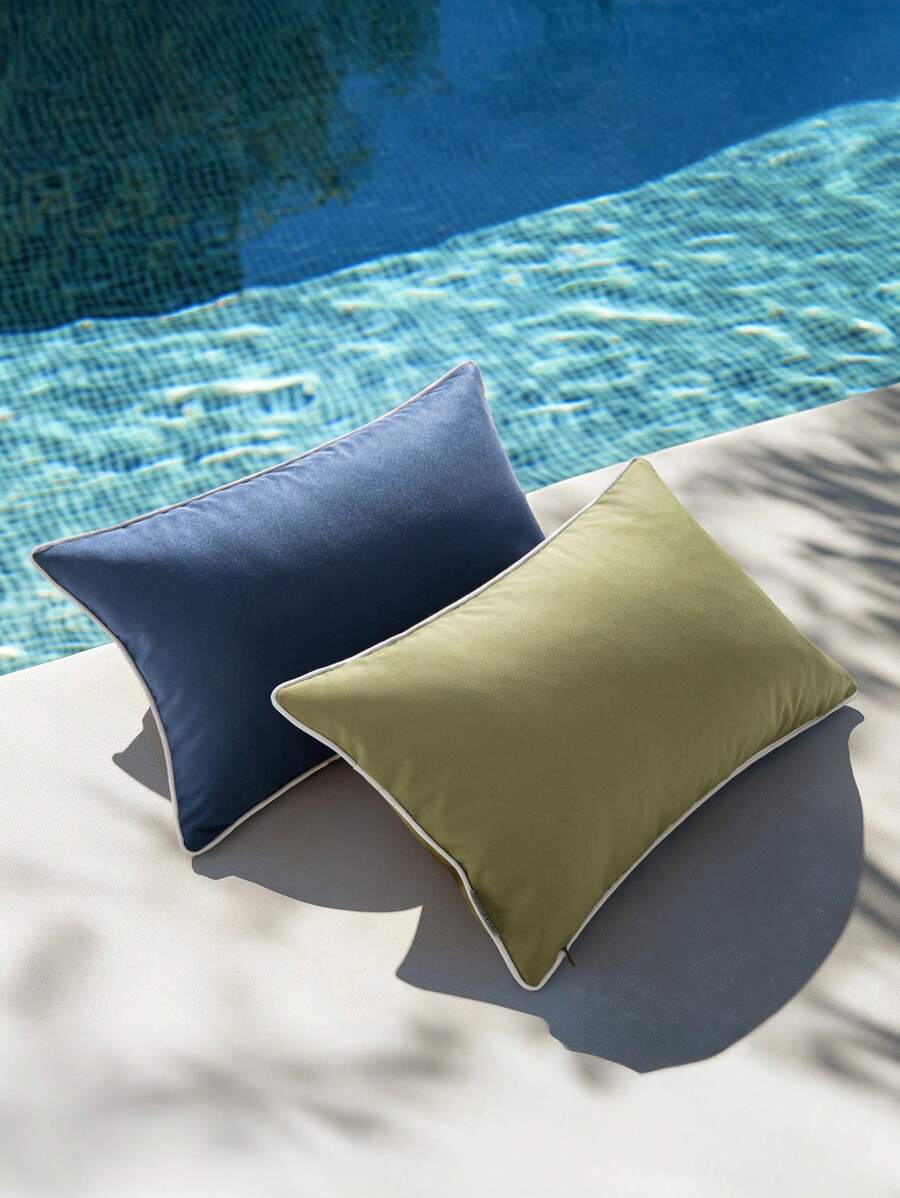 2 件户外滚边枕套(无枕芯),适用于露台、泳池边、庭院家具