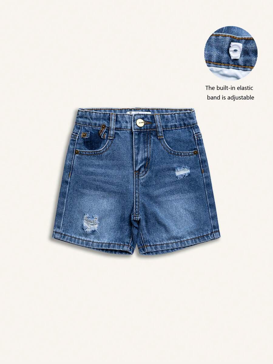 时尚年轻男孩可调节腰部破洞洗水牛仔短裤