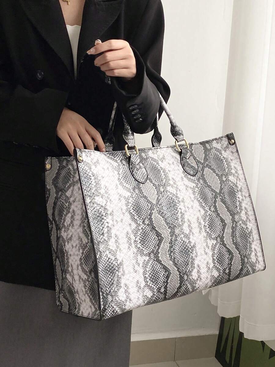 时尚蛇纹印花四季旅行购物手提包,超大容量手提包,吸睛女士工作包