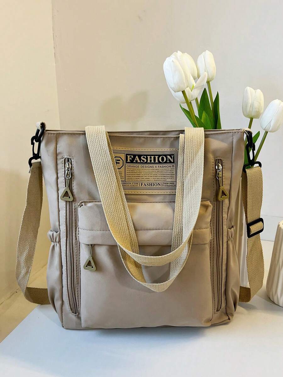 时尚休闲时尚字母印花大容量手提包斜挎包,适合大学/学院教室/通勤/工作/办公室/节日/度假/节日/派对/旅行,适合女性,
