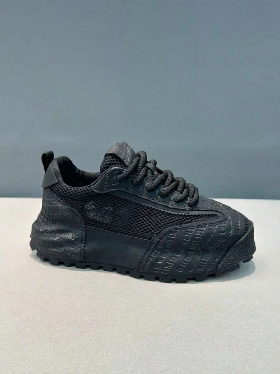 • 时尚精选,男士透气网眼轻便厚底休闲增高运动鞋 - 黑色 - 查看 4