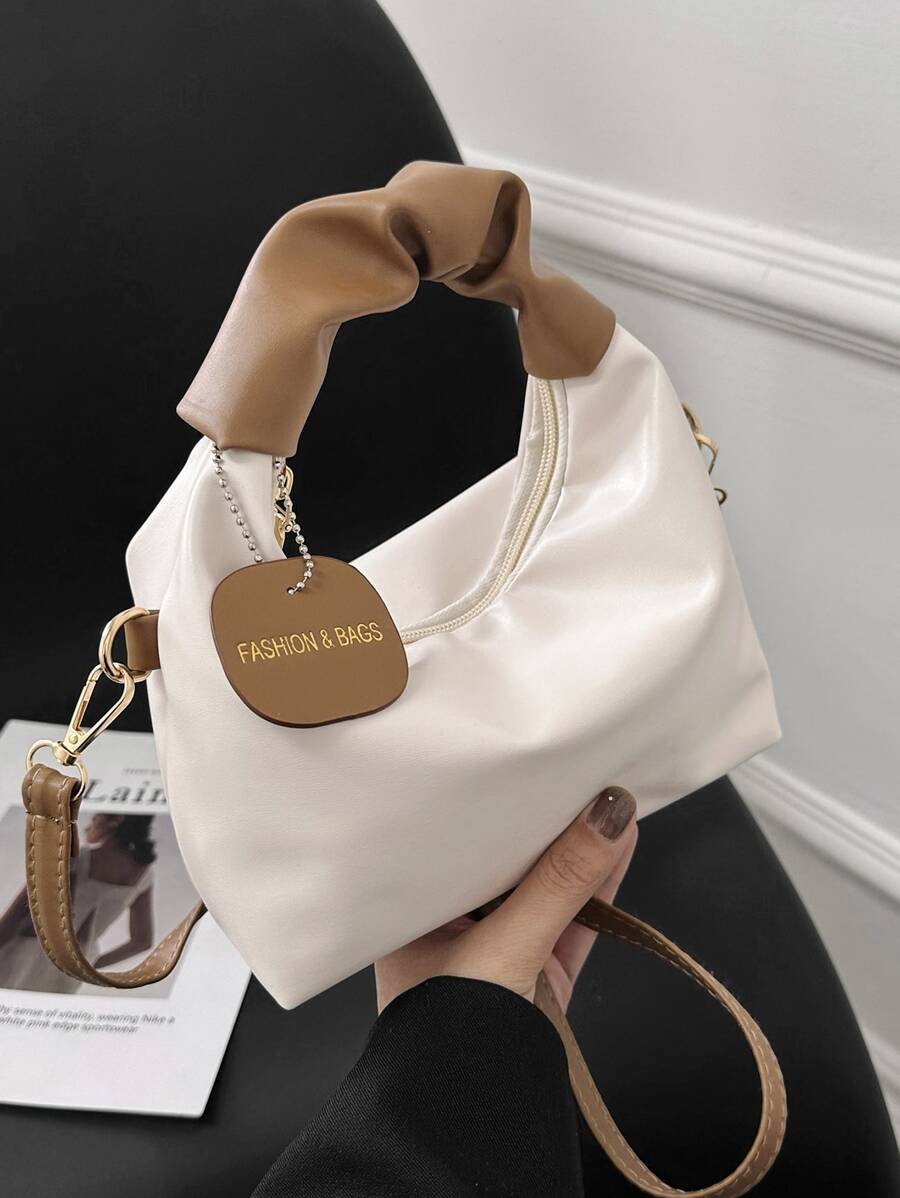 • 時尚、簡約、休閒、簡約的褶皺細節斜背袋,附帶吊飾,適用於女孩、少女 - 白色 - 查看 8