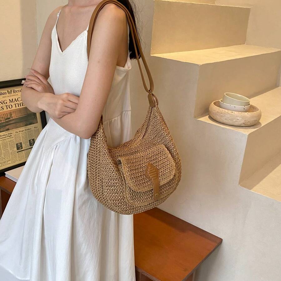 时尚简约女士编织斜挎包,小巧休闲单肩包,适合夏季海滩度假