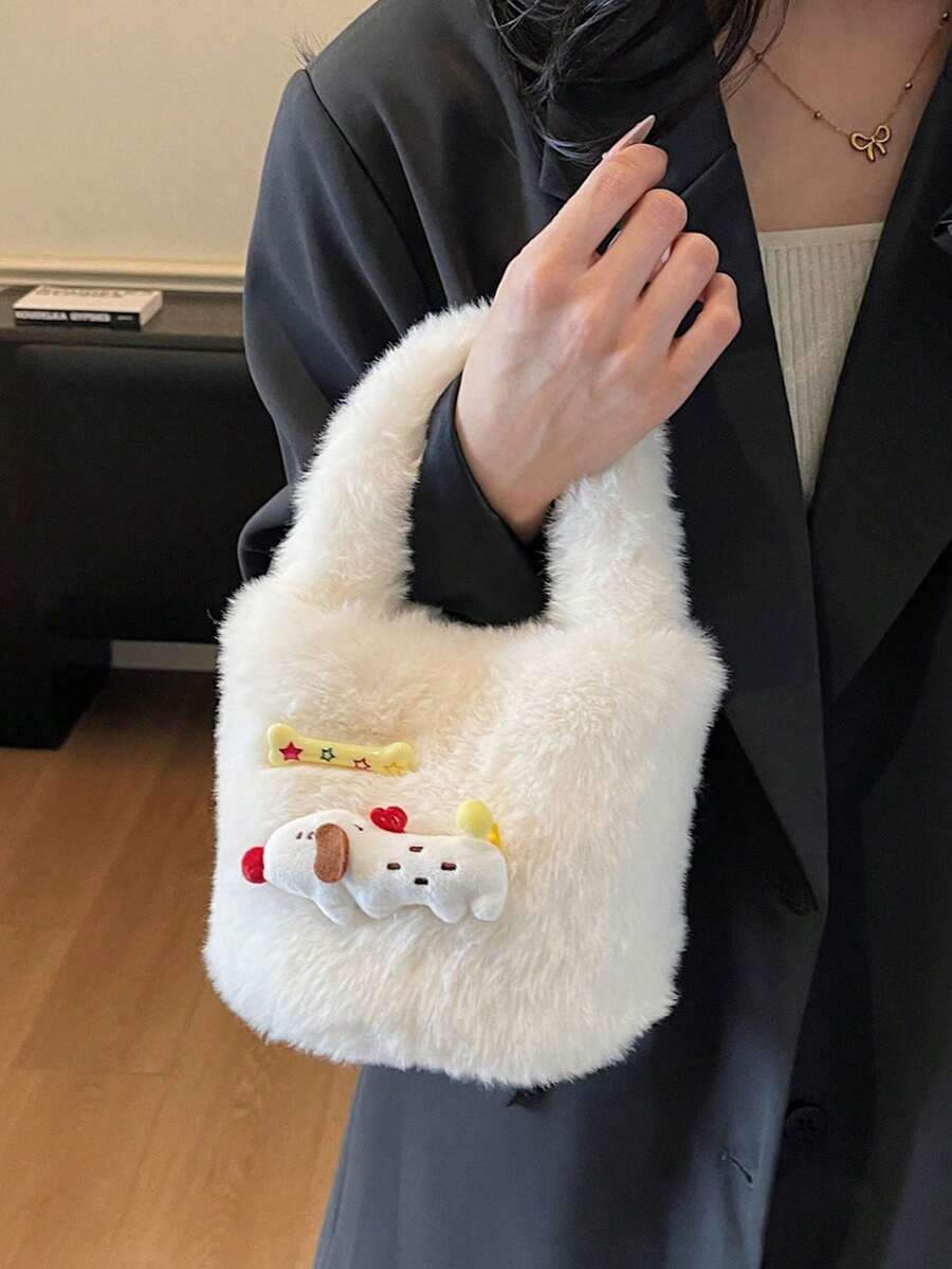 • 时尚女士手提包,秋冬小毛绒包,新款百搭手提包,精致迷你手提包,毛绒包 - 白色 - 查看 4