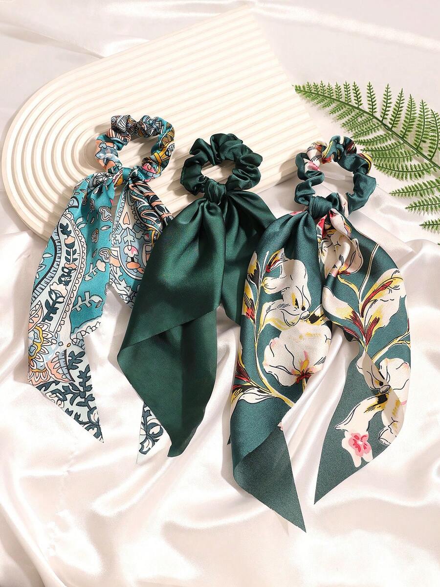 3件套缎面纯色头巾三角披肩发饰发圈马尾发圈发绳橡皮筋发圈发绳弹力发带,发圈,发饰发带头饰