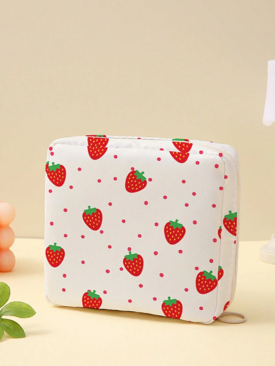 水果图案印花卫生巾收纳袋可重复使用卫生巾袋经期袋卫生袋适用于大学宿舍旅行浴室学校