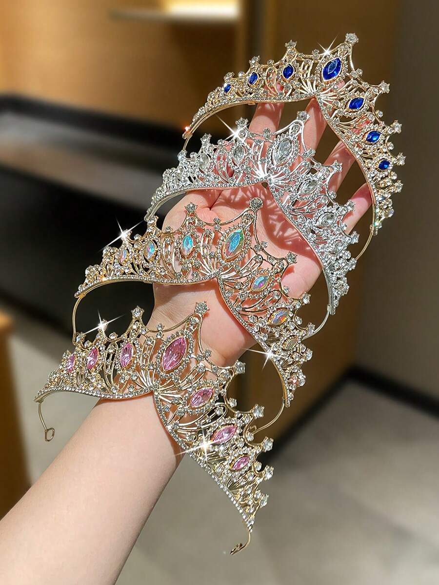 1 件女士优雅水晶皇冠、复古风格头饰、新娘配饰、仙女风格装饰、节日服装、新娘礼物、派对用品、金发夹、夏季女士配饰、舞会头饰、伴娘礼物、花冠、头饰、服装皇冠、发饰、学校用品、金皇冠