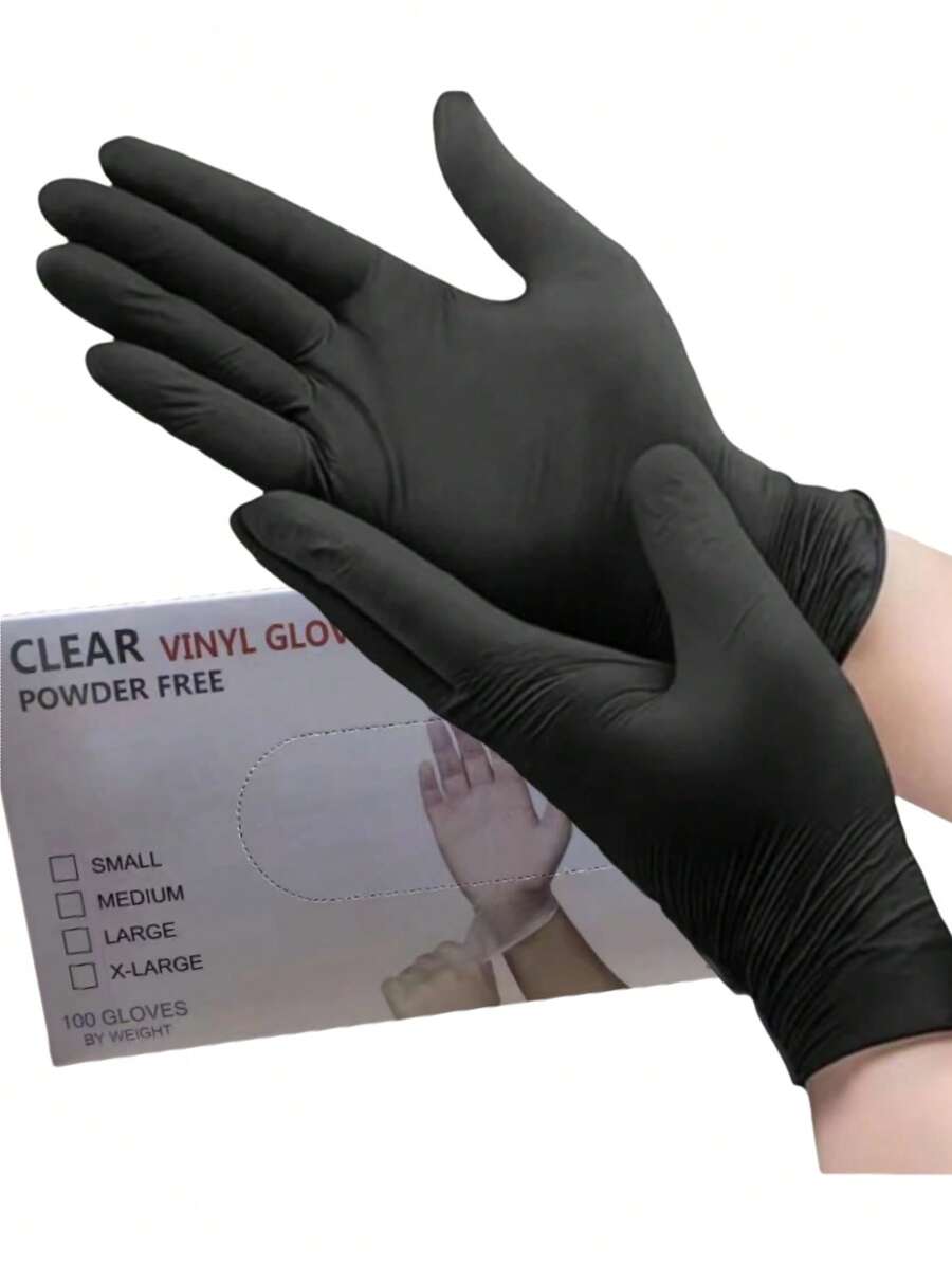 100 只一次性无乳胶丁腈手套(黑色)- 无粉,耐化学腐蚀,4 密耳,适用于沙龙、纹身、美发、环氧树脂工作、家庭和办公室使用耐用家用手套,适用于厨房、浴室、清洁、食品处理、纹身、美容、染发、宠物、沙龙、清洁和家居配件