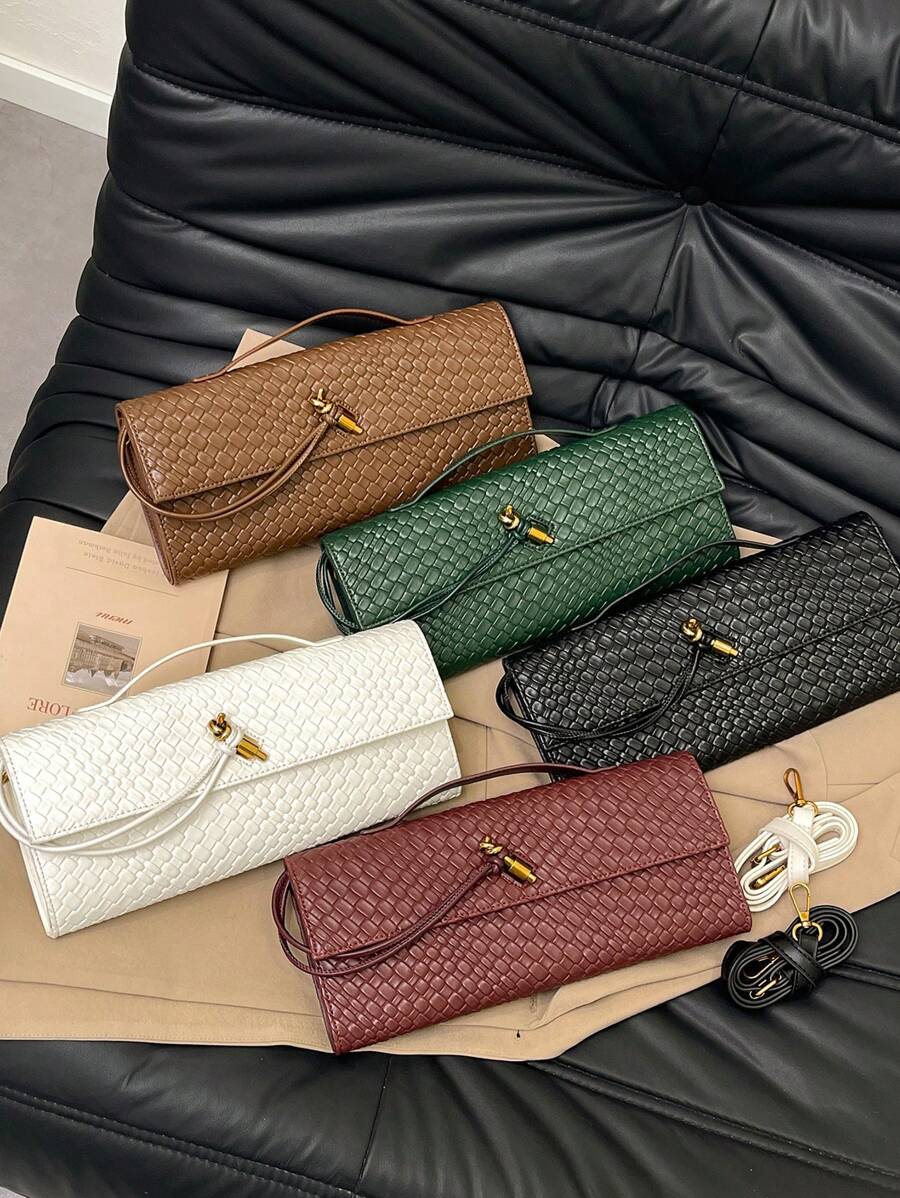 BAILEE 1个新款编织图案单肩法棍包,小众高端横款设计,可手提午餐包,斜挎多功能包,翻盖设计,女士手提包,适合度假、时尚穿搭、与朋友购物以及作为礼物。