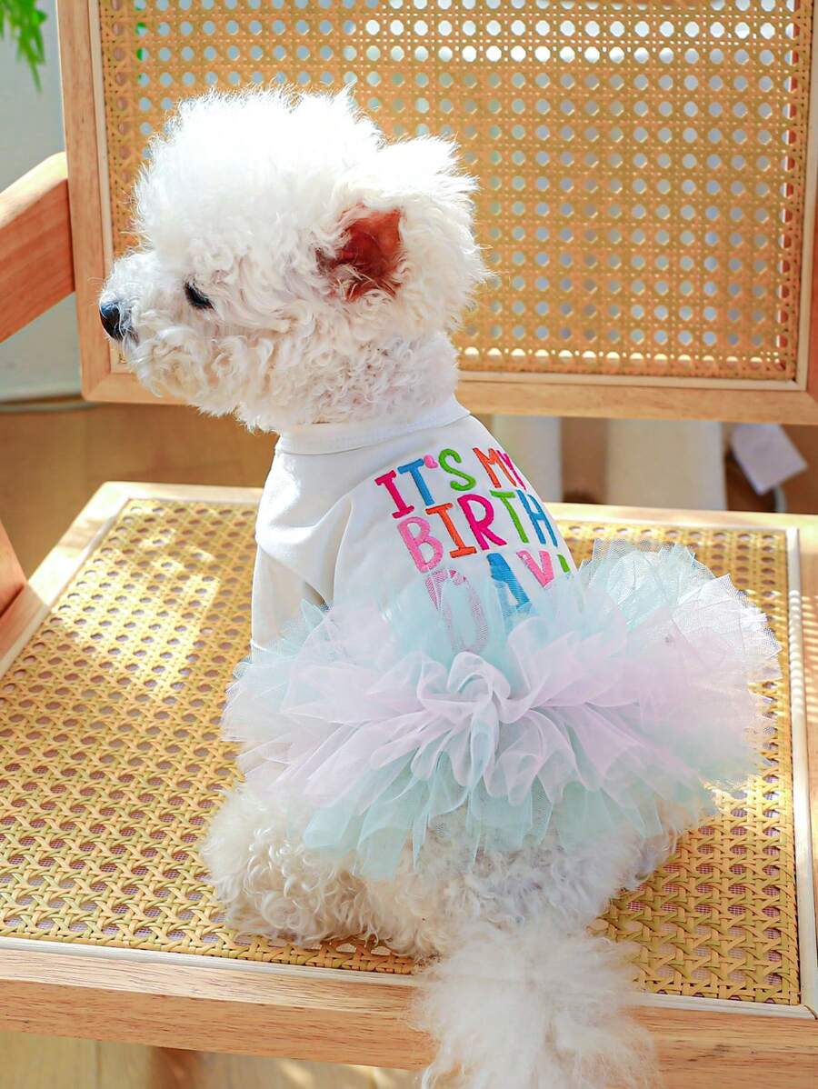 1入組字母刺繡寵物連衣裙適用於狗狗和貓適合春天和夏天