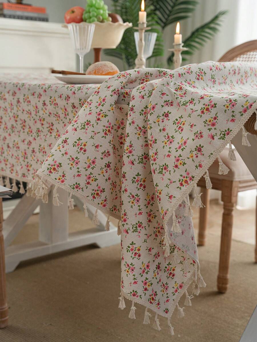 Bubaba 1 件花卉印花矩形桌布,乡村农舍风格,带流苏,适合餐厅、厨房、餐桌、派对、节日、酒店、咖啡厅、卧室等所有季节的家居装饰