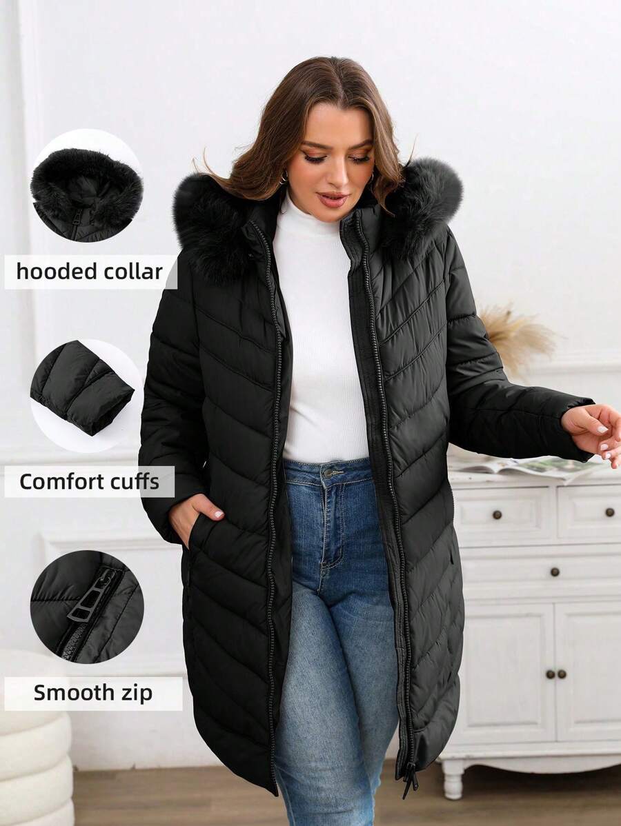 • Giolshon 女士优雅简约蓬松连帽夹克 - 舒适度过秋冬,同时保持时尚 - 黑色 - 查看 8