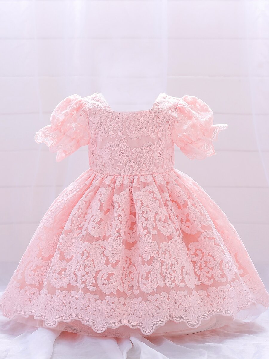 少女蕾丝缎面薄纱连衣裙,优雅连衣裙,适合上学、户外派对等场合。