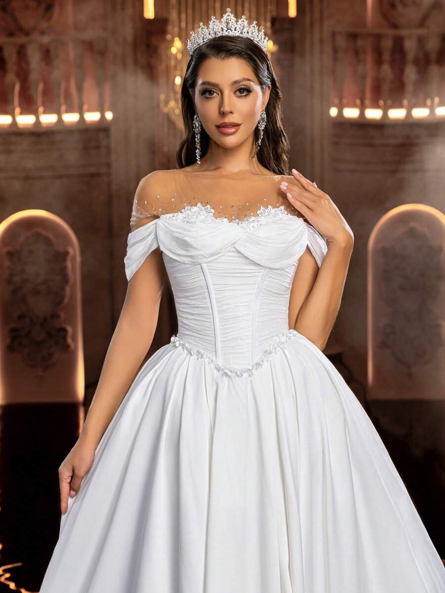 Glamrae 优雅的法式浪漫刺绣露肩A字型正式礼服,适合婚礼、宴会和正式场合。