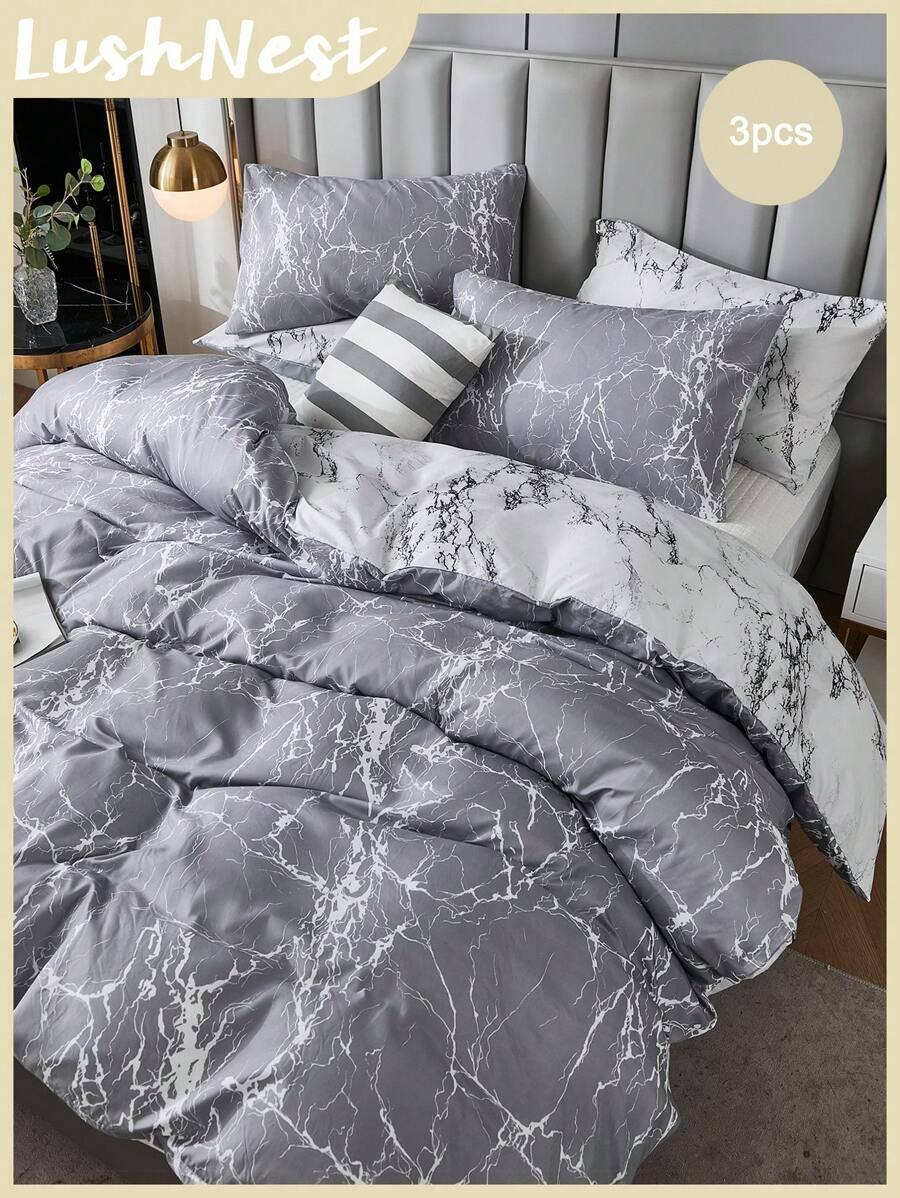 3件套灰色大理石纹被套,灰色大理石印花3件套,房间装饰,柔软轻盈的超细纤维被套,男女通用,2个枕套,不含被芯,礼品,聚酯纤维舒适透气,四季皆宜,适合卧室