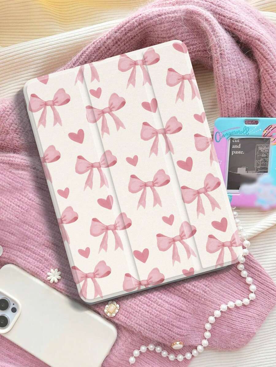 苹果手机壳 1 件粉色蝴蝶结双面彩绘亚克力透明水晶后盖保护壳兼容 iPad 10.2 英寸 2021/2020/2019 iPad 第 9/8/7 代,兼容 iPad 第 5 代 (9.7 英寸)、iPad Air 第 5 代 2022 /iPad 第 10 代/iPad Pro 11 英寸 2024,带笔架,支持自动睡眠/唤醒盖,带防摔功能