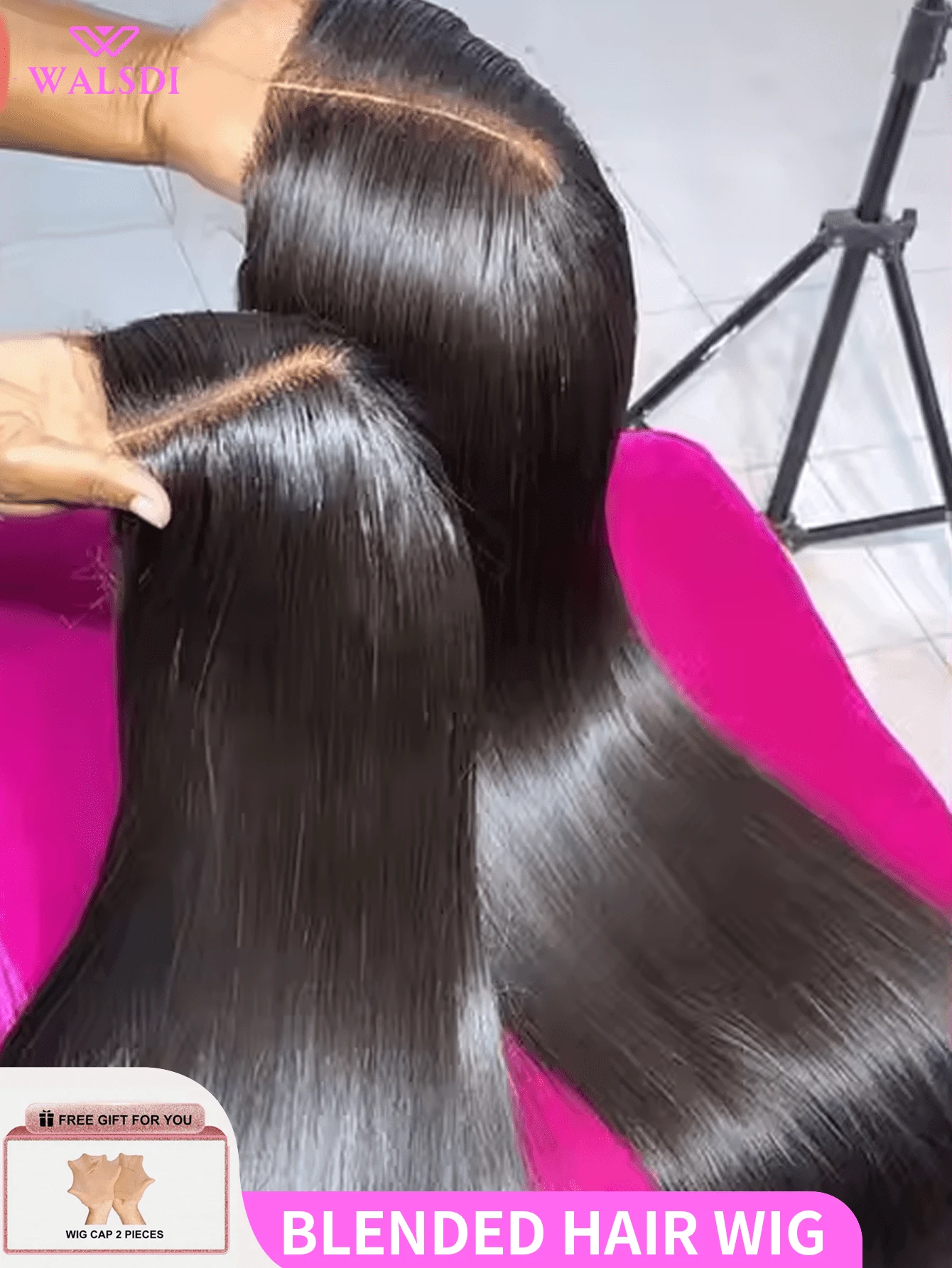 高清蕾丝无胶假发混合真人头发 10-36 英寸预拔预剪 4x4 5x5 13x4 13x6 13x1 高清蕾丝闭合假发,可戴可戴 200% 150% 密度波浪卷发 高清透明瑞士蕾丝耐高温纤维合成混合假发,带婴儿头发,自然黑色,适合女士黑色 10-14 英寸鲍勃假发