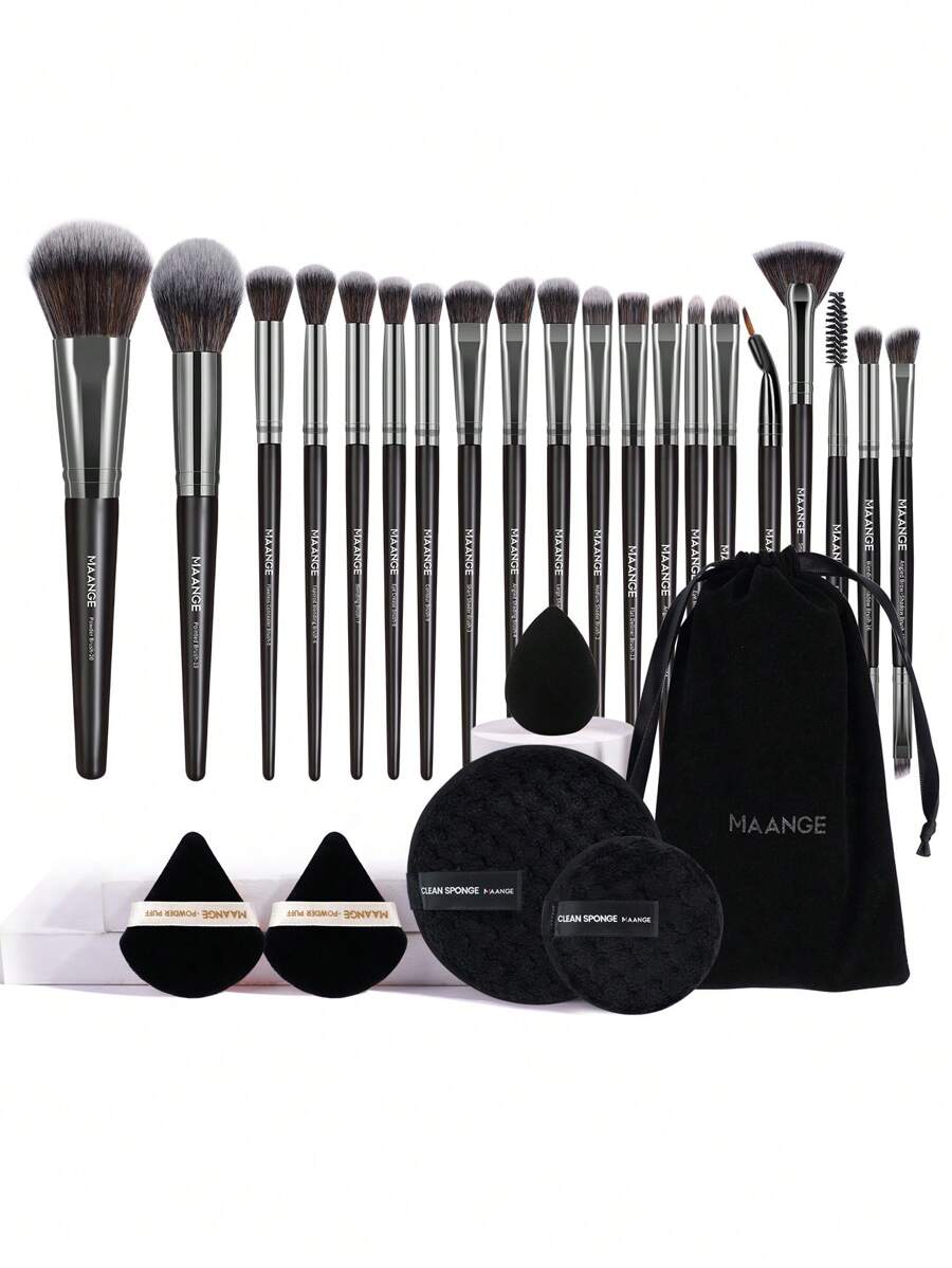 MAANGE 26件套化妆工具,包括20支化妆刷套装、2个卸妆粉扑、2个气垫散粉扑、1个大号美妆蛋和1个收纳袋,女士和女孩旅行化妆刷套装礼品。