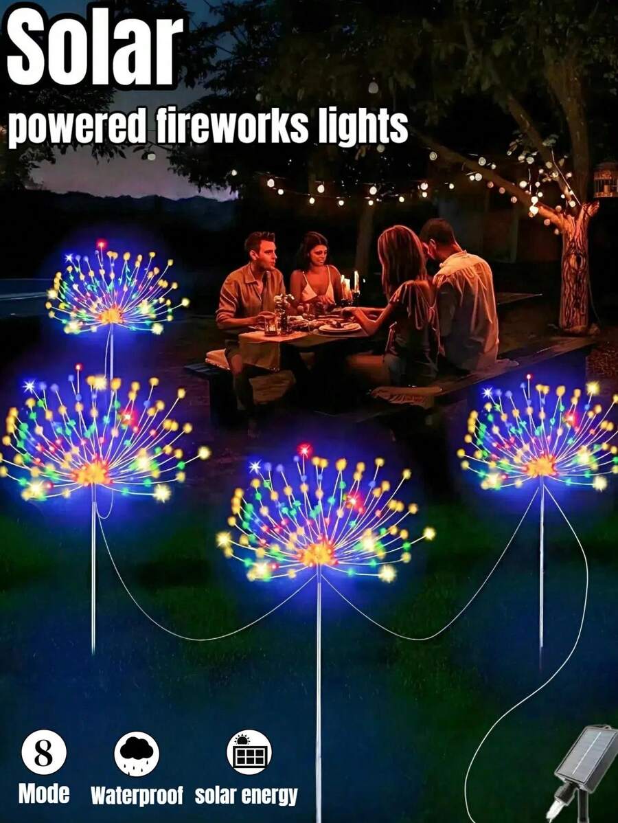 8 种模式太阳能烟花灯,IP65 防水和自动开/关,适用于花园、庭院、小路、亭子、婚礼、派对、装饰灯、圣诞节、万圣节、情人节装饰氛围灯,60-360 LED(暖白/白/彩色)