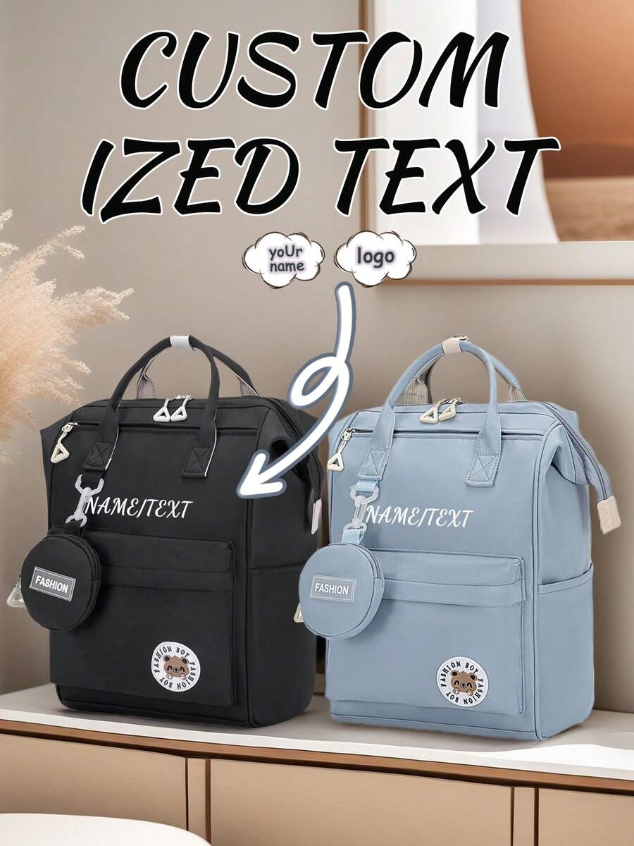 定制背包,节日主题名称,适合学生,个性化书包,旅行包,学生旅行背包,纯色大容量休闲手提包,配有拉链,适合日常使用和作为礼物