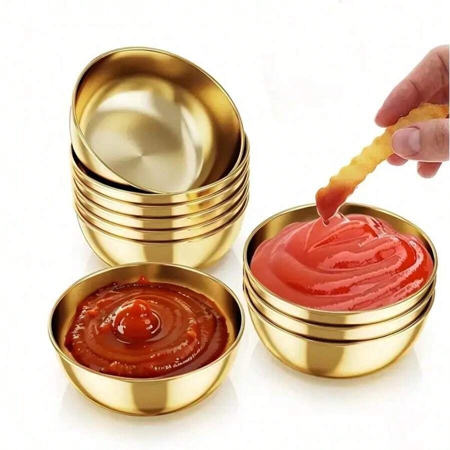 奢华金色酱料碟 酱料碟 寿司酱料碟 优质不锈钢迷你独立酱料碗 圆形调味碟 适用于寿司/墨西哥卷饼/炸薯片 开胃菜盘 即食拼盘配件 圣诞节/感恩节/新年/派对/自助餐/餐饮用品,学校用品