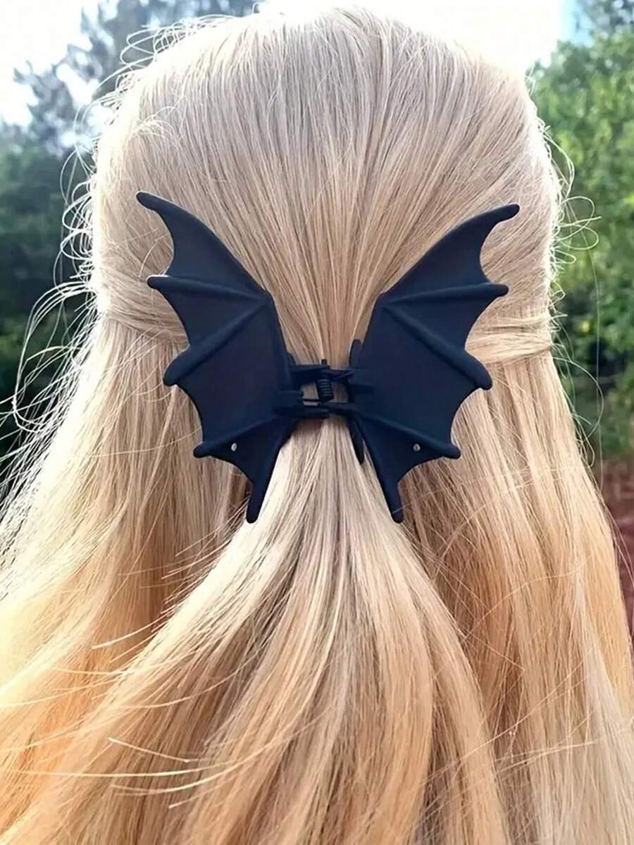 发夹爪夹 1个装 哥特朋克哑光黑蝙蝠翅膀发夹 - 女士优雅金属马尾辫发饰爪夹,适合派对、发饰 | 哥特朋克风格 | 塑料材质,配饰头饰,校园用品,大学秋季配饰,明星配饰,秋冬度假装扮女装