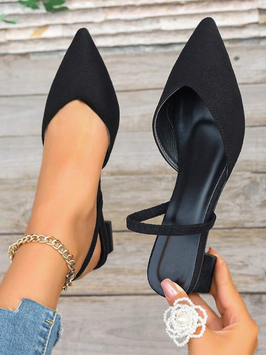 2025秋冬季黑色高跟露跟尖头穆勒拖鞋女鞋,高跟凉鞋,优雅,女士浅口鞋,高贵典雅