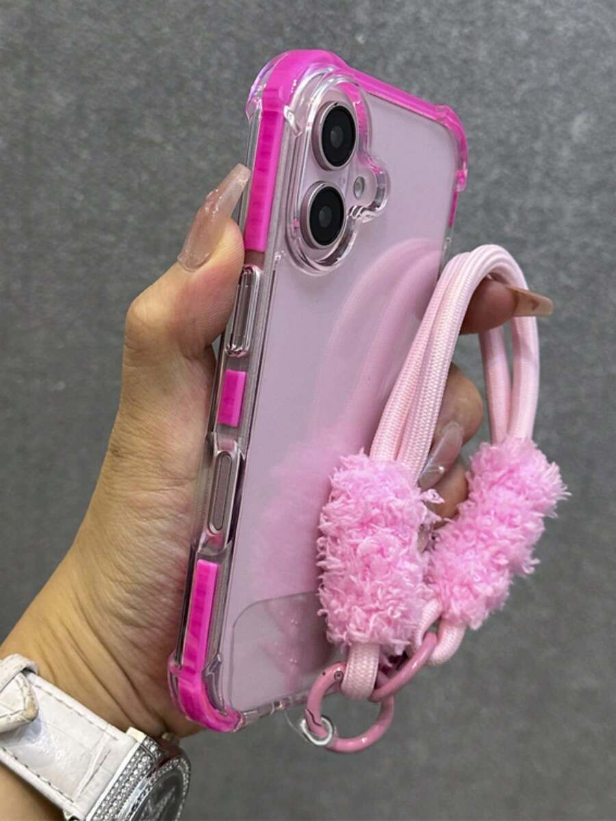 混合材质透明防撞保护壳,配粉色腕带,兼容 17 Pro Max、17 Pro、17 Air、14、15、16、17 Pro Max、11、12、13、14、16E,防震气囊透明保护套