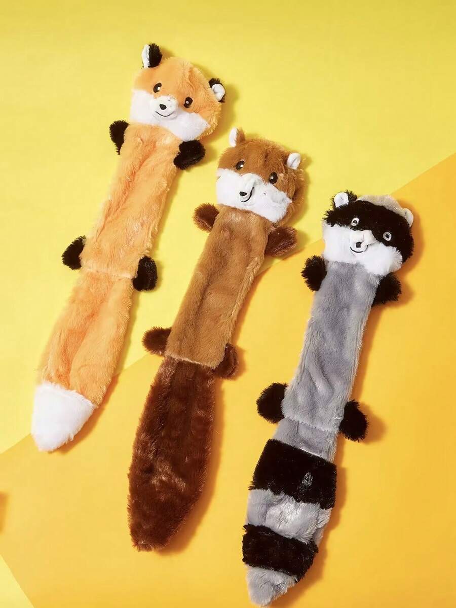 PETSIN 1 件宠物毛绒吱吱玩具,浣熊和松鼠形状咀嚼玩具,耐用的狗/猫出牙和咬玩具,适合自玩和训练