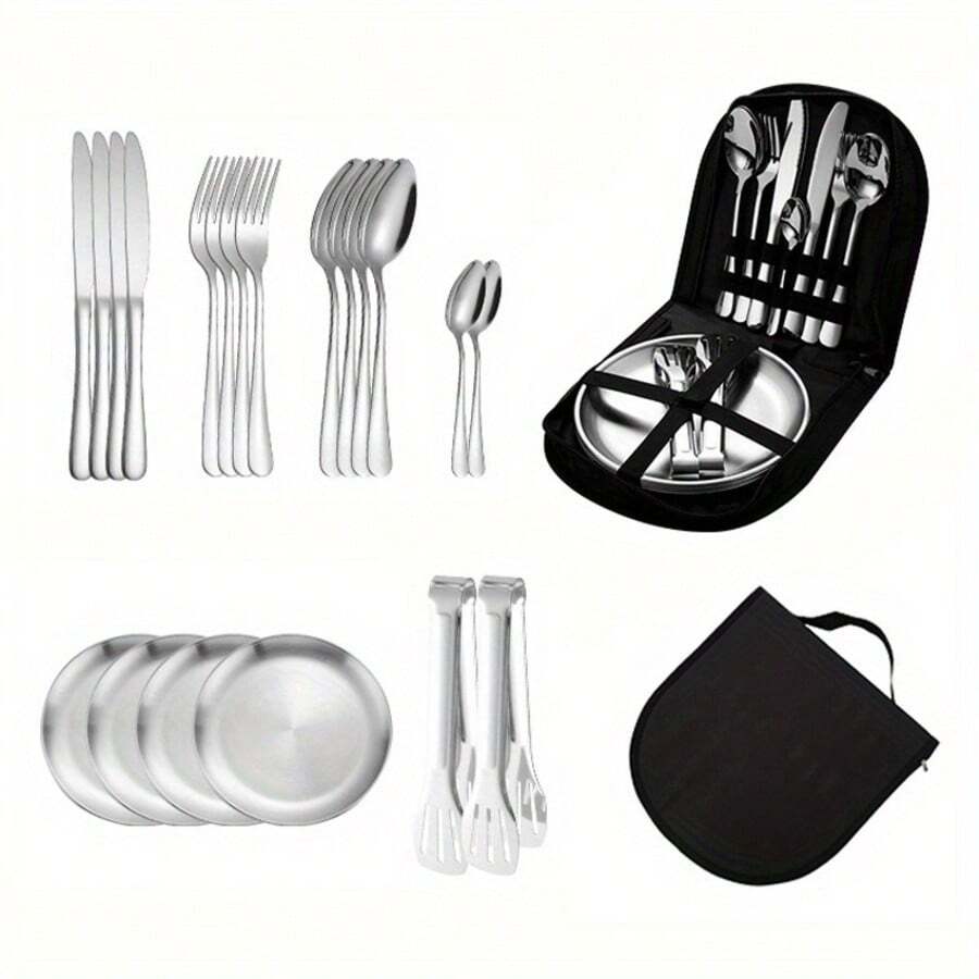 耐用便捷的露营餐具套装 - 便携式耐用户外野餐套装,包含托盘、叉子和勺子,适合徒步旅行、背包旅行和露营探险 - 非常适合旅行和户外用餐,提供两种套装尺寸可选