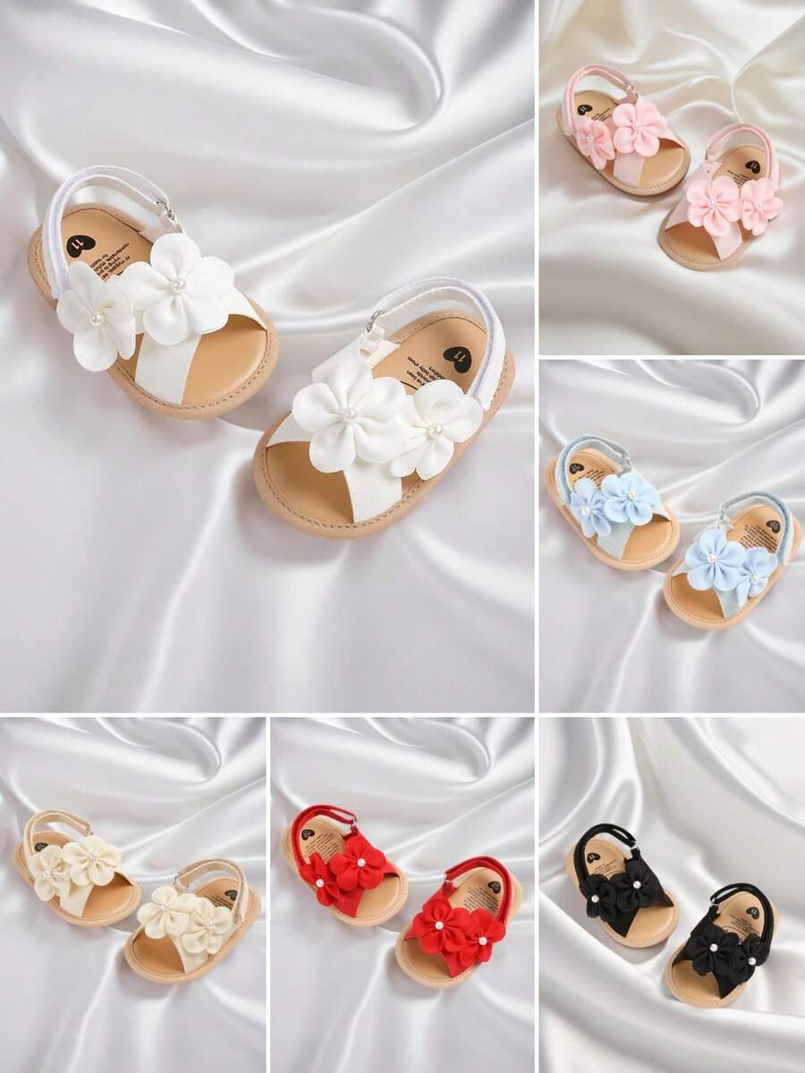 婴幼儿女童凉鞋新生儿防滑软橡胶底凉鞋男童露趾户外休闲夏季初学步鞋婴儿夏季凉鞋0-1岁软底防滑运动鞋白色小花透气婴儿鞋0-18个月