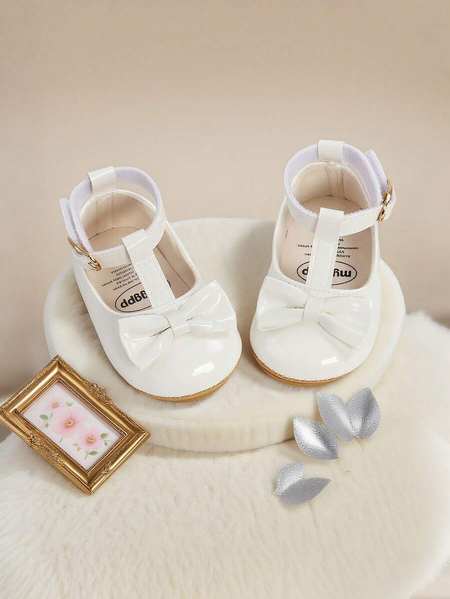 女婴玛丽珍平底鞋,带蝴蝶结,防滑软底,PU皮革,新生儿,幼儿学步鞋,正装鞋