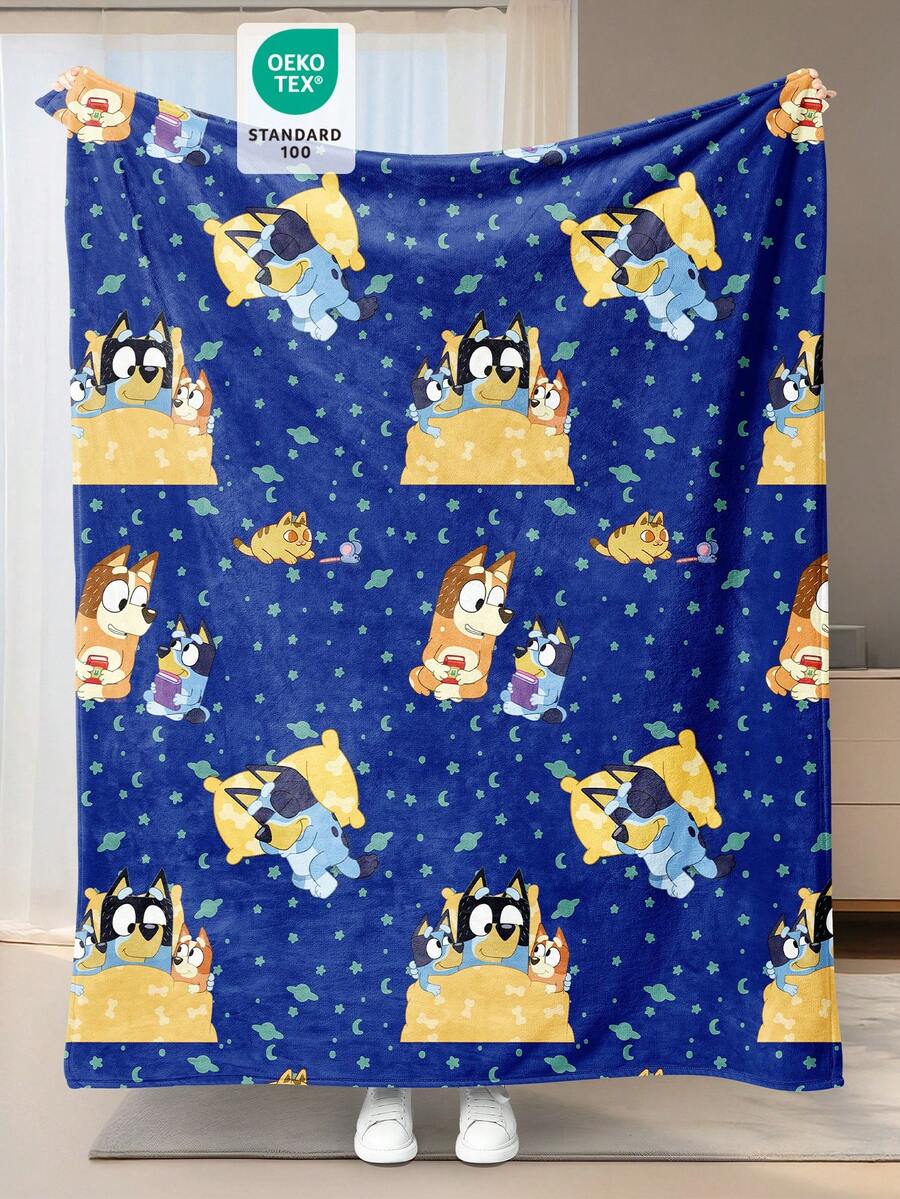 Bluey 法兰绒毯 - 非常适合房间装饰,超级柔软轻盈,卡通印花,图案为 Bluey 抛掷气球和星空 Bluey,居家使用、日常使用皆宜,是送给朋友、家人或自己的生日礼物,舒适保暖,柔软易打理,可爱风格,Bluey 流苏毯,卡通主题图案,秋季装饰、房间装饰、返校季、学习用品。注意:28*39 英寸 - 非常小巧