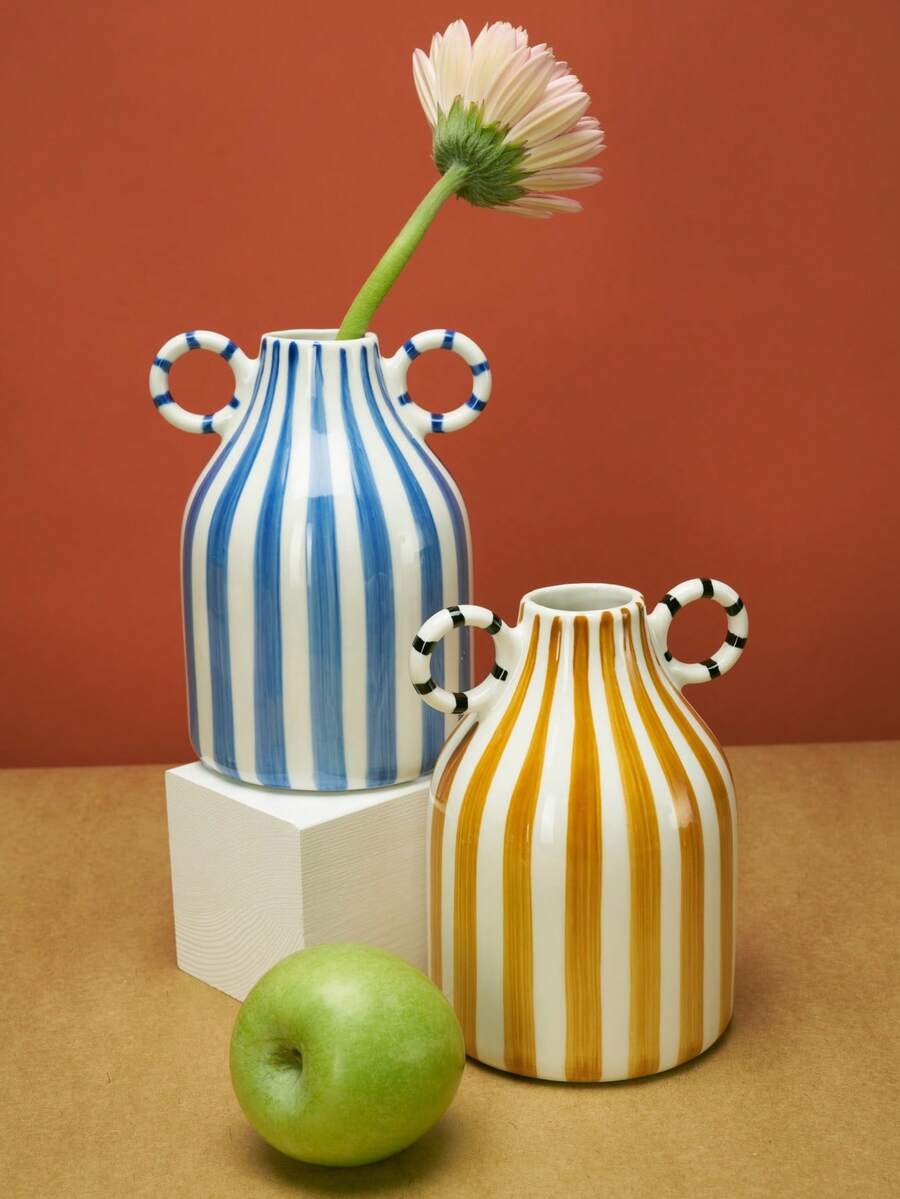 Joivida 1 件手绘简约花器,手绘双耳条纹壁龛陶瓷花瓶,民宿餐桌插花装饰摆件,房间装饰,家居装饰,厨房装饰,婚礼装饰,餐桌装饰,中心装饰,办公室装饰,花园装饰,户外装饰